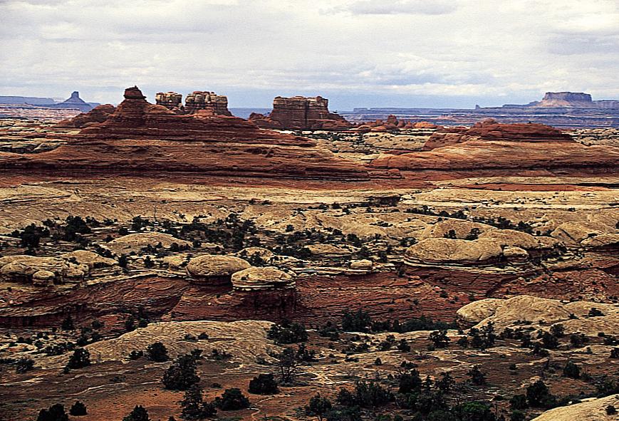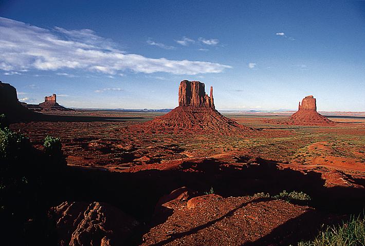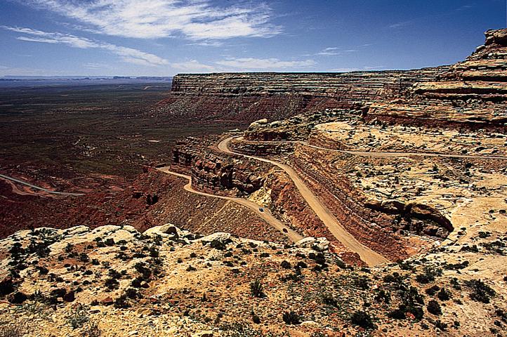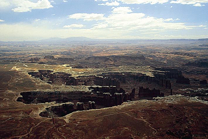 urchquert man diese mit dem Auto von Los Angeles aus bis zum Grand Canyon - also nun zurück von West nach Ost - so folgen auf die Granitwellen der Sierra Nevada erst vulkanische Auswürfe und Basaltberge, dann tief aufgerissene Becken und Senken, darunter das Death Valley ( ja, es liegt so weit innen! ) mit fast 100 m unter 0, dann Einbrüche mit in allen Richtungen wild umhergeworfenen, Kilometerdicken Erdschollen, von ungeheuren Kräften und Strudeln verdreht und wegen der wüstenhaftigkeit voll sichtbar, schließlich das Hochplateau von Arizona mit dem Grand Canyon und seinen Ausläufern.