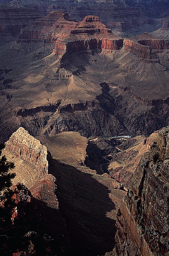 Ist der Grand Canyon nun eine Vertiefung oder eine Erhebung? Er ist Teil einer Erhebung, sonst könnte der Colorado - Fluß nicht aus ihm herausfließen. Er ist eine gewaltige Abflußrinne der Rocky Mountains; ein Vorgebirge, in dem die Täler noch ausgefräst werden. Death Valley ist eine Vertiefung. Da kommt nichts heraus.