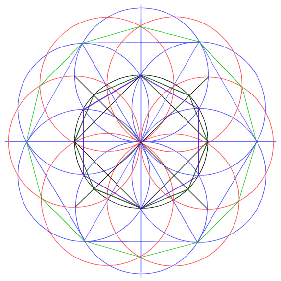 Partitioning of a whole into 360 degrees / 60 minutes with a compass and a ruler as a universal instrument for the division of space and timeThe partitioning of a full circle as a representative of the whole into 360 degrees goes back to Babylonian times of farming and simple technology - 5000 years ago, around 3000 BC to 300 BC. Our current decimal number system is based on the number 10; their numerical system was based on the number 60. In those days, the emphasis was not, as it is today, on arbitrarily precise mathematics, but on those principally so; it was not about calculations ( these were then neither possible nor needed ), but about division and construction of artifacts with available aids. Within simple life, symmetry, dividing evenly, and fair and correct sharing, are of big, if not existential importance. Since reality itself is but an approximation on the mathematically correct, life did not depend on mathematically attainable precision or simplicity, but on the practically attainable. And the partitioning of a whole into 360 parts can be carried out relatively simply and mechanically, and it happens to be exceptionally practical mathematically as well. The numbers 12, 60 or 360 can be divided evenly by almost any number that is useful in rural and simple municipal life, up to and including the 12 itself by 1, 2, 3, 4, 6, and 12, the higher ones in part by 5, 10, 15, 20, 30, and 60 as well; all together by a dozen ( again twelve ) factors, in which 60 represents 5 dozen and 360, for example, 30 dozen. The factors for 360 itself are numerous: 1, 2, 3, 4, 5, 6, 8, 9, 10, 12, 15, 18, 20, 24, 30, 36, 40, 45, 60, 72, 90, 120, 180, and 360. The decimal or by-10-system, on the other hand, while easier for calculations, is not per se a system for measurement and allocation, but rather one for counting and computing; not only for systemic reasons, as with the later established dummy zero, but because people regularly have ten fingers. Therefore this system can be used very well to count, but not that well to share. It has, up to the number 10, only 4, and at that different, divisional factors as the by-twelve-system ( 1, 2, 5, 10 ); up to 100 there are only 9 altogether ( namely 1, 2, 4, 5, 10, 20, 25, 50, 100 ). The number of divisional factors altogether is fundamentally higher in the open decimal system; however, these do not find practical application in simple life ( on the other hand, the number "three times ten" for example can be more easily understandable in some contexts than "three times twelve" - and can be very simply represented by showing both hands open three times ). There is an even another divisional system, used until recently for everything that could be measured mechanically in daily life, which is to this day still in use here and there: the system of continued halving or bisection. With a beam balance, or a cord, it is very simple to halve quantities or lengths, then bisect these into quarters, eighths and sixteenths and so on: one quarter of a liter, a three quarter meter, one sixteenth of a inch, half a pound, and so forth. The practicability of given calculating systems depends on the circumstances. This becomes interesting where different systems for counting and dividing overlap and conflict: the numbers of the by-12-system are easy to divide by three, this is difficult in the decimal or by-10-system, and in the halving or bisectional system. On the other hand, the decimal system copes well, for example, with the 5, the by-12-system far less; the halving system ditto. In old times, however, for example in geometry - earth measurement - the expression in absolute correct numbers was not as important as that a given whole could be divided up, completely and evenly, with simple and available mechanical tools. And it actually is possible to divide a full circle into 2, 3, 4, 6, 8, 12 and 24 parts with nothing but a ruler and a pair of compasses ( note the 8! ). In fact, in Babylonian times, both could consist of one single tool, namely a string or cord with a peg on each end. A tense cord between two pegs serves as a ruler; if one then moves one peg, this describes a circle, in which the length of the cord determines the radius.