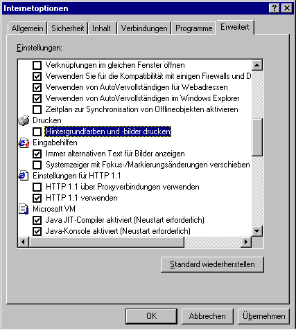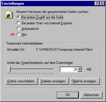 einzustellen, sonst werden einmal besuchte Seiten nur noch aus dem