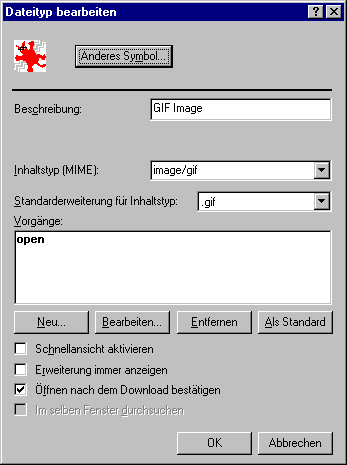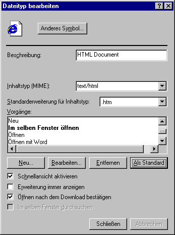 Windows 9x kann man in "Dateitypen" pro Datei mehrere