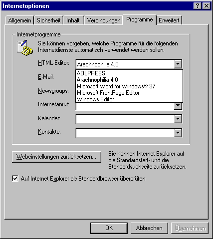 Wert für 'Standard' von "aspfile" in "htmlfile"