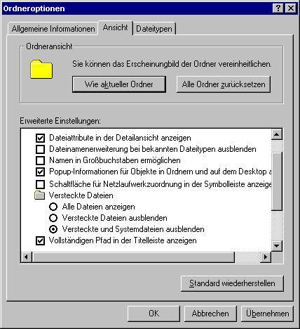 Ordneroptionen / Ansicht / Wie aktueller Ordner",