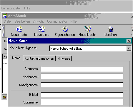 Wenn Netscape diesen Teil im Adressbuch findet, wird die Adresse