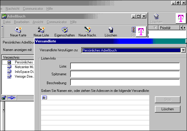 Netscape öffnet dann eine Auswahl aller Adressen, in denen