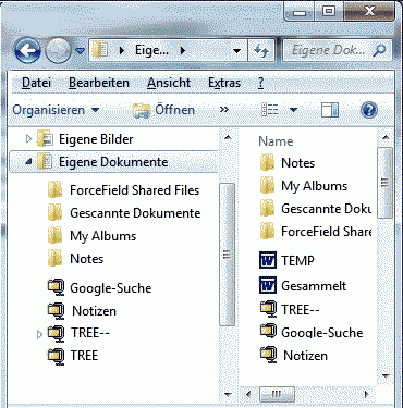 des offenen Ordners ( im linken Bereich des Explorers, in dem auch die