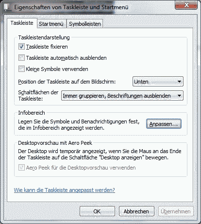 Taskleiste mit anschließenden Klick auf "Eigenschaften",
