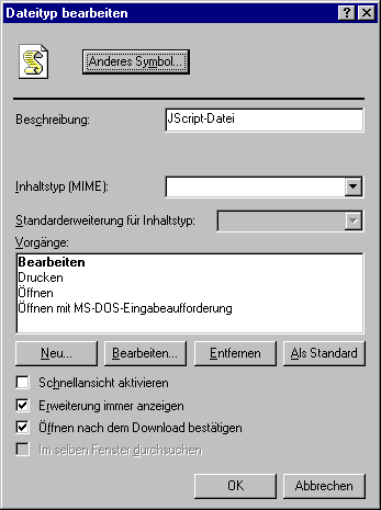 Ordneroptionen / Dateitypen / Bearbeiten / Neu" bestimmt