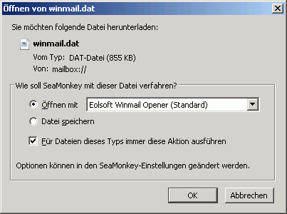 Um Dateianhänge im Format WINMAIL.DAT auch ohne